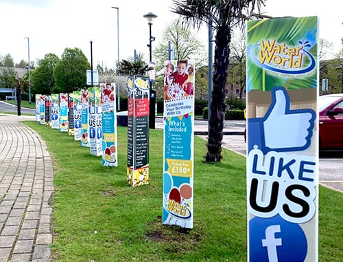 We have worked with Waterworld for many years on a wide range of design projects. Recently we have taken on creating all of their signage inside and outside to incorporate their mascot “Lucy” We have created a friendly and well designed themed style and now carried the look through everything we create for them.